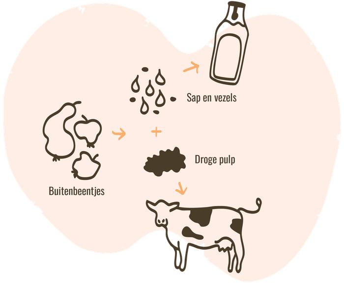 Van vrucht tot pulp krijgt alles een bestemming. Zo sluiten we de cirkel en halen we het beste uit elke vrucht. Wat overblijft na het persen, wordt als voedzaam voer teruggegeven aan de boer, net als in de tijd van de oude gilden.